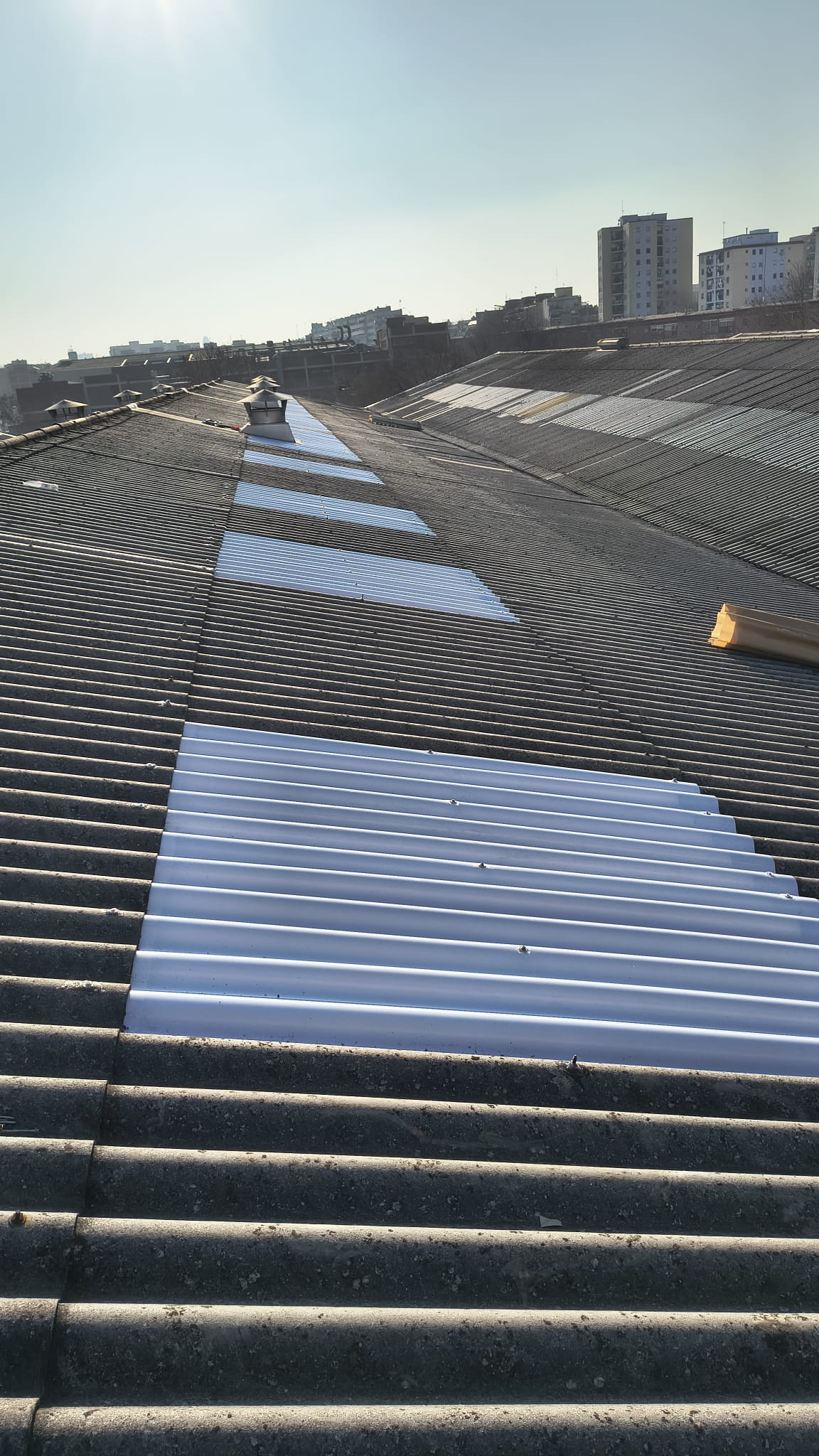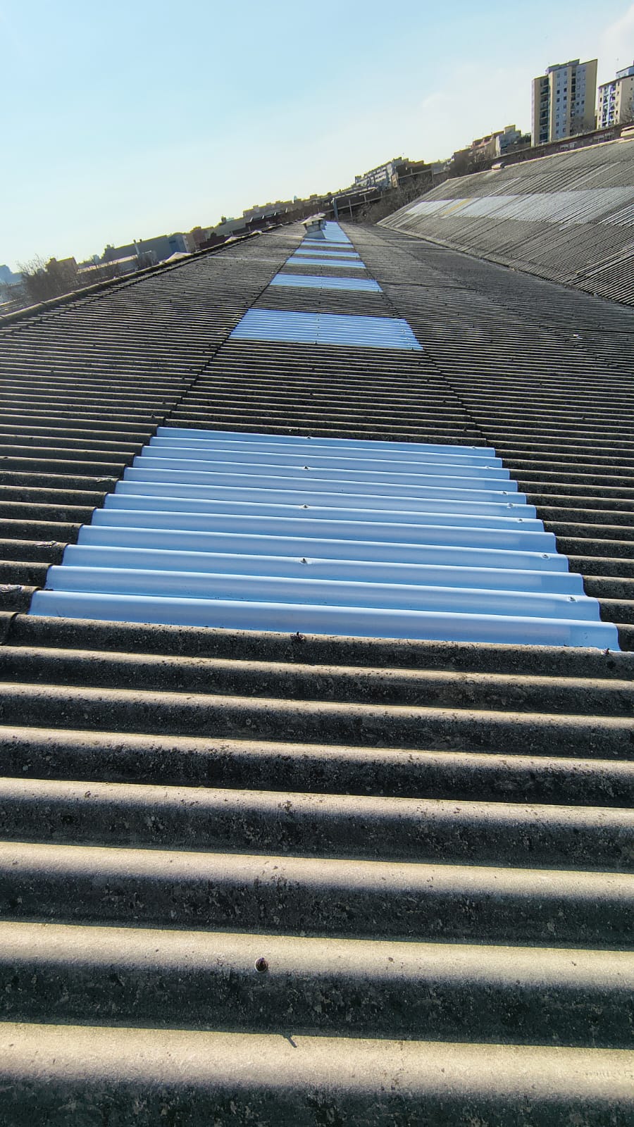 Reposición lucernarios gran onda de policarbonato greca opal de 0.8mm en cubierta.