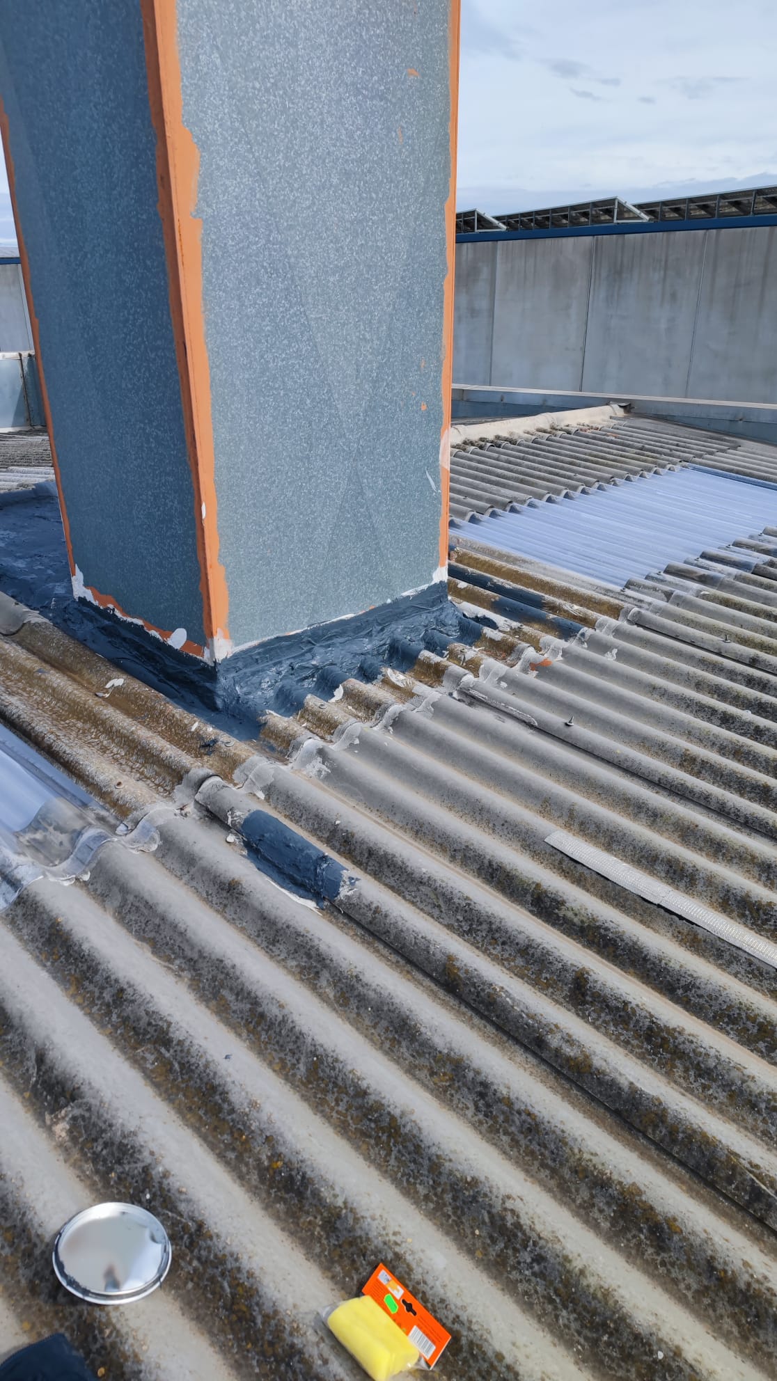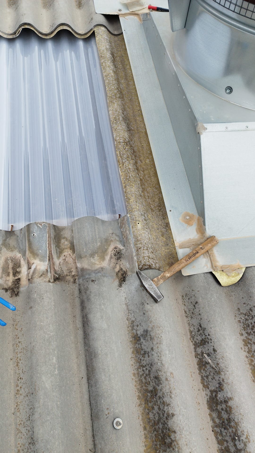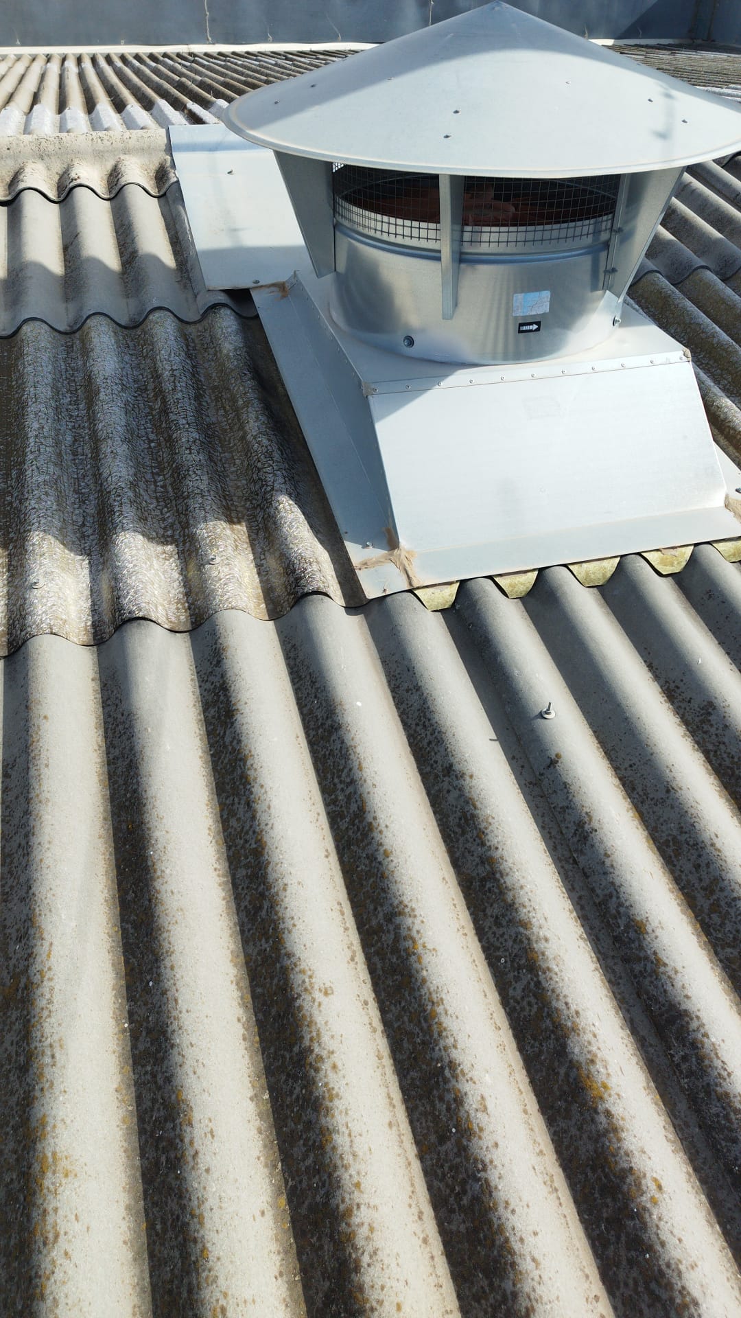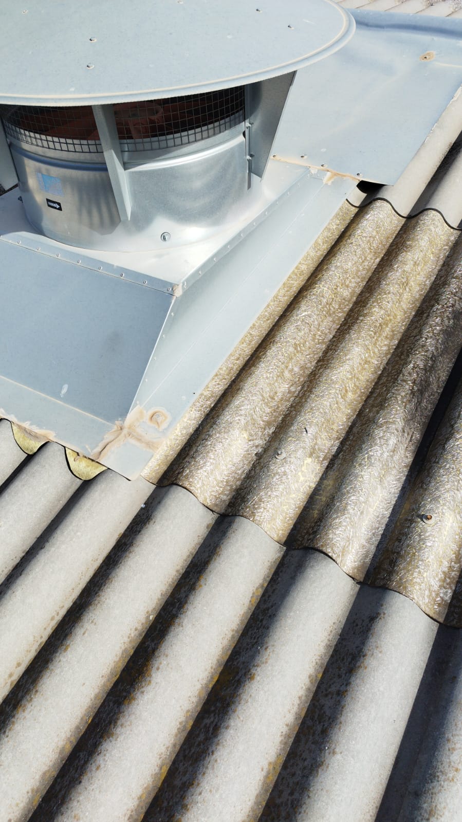 Retirada por medios manuales de lucernarios de poliéster en cubierta, 2 capas superior modelo gran onda e inferior modelo mini honda. Nueva colocación en los huecos existentes de policarbonato compacto mismos perfiles de los desmontados, pero de 1mm de espesor, sellado con silicona neutra entre las nuevas placas y limpieza de la zona anexa de trabajo.