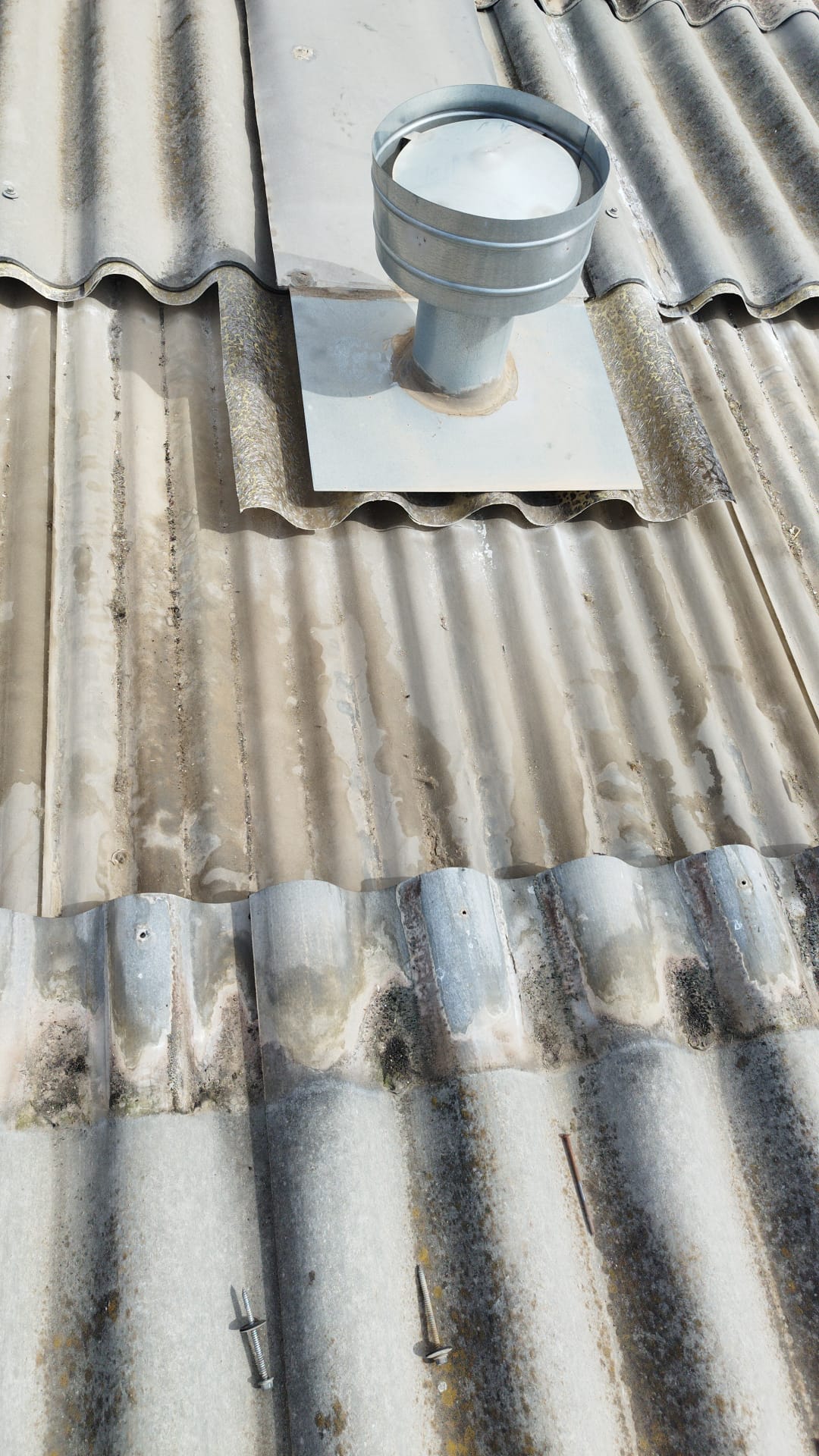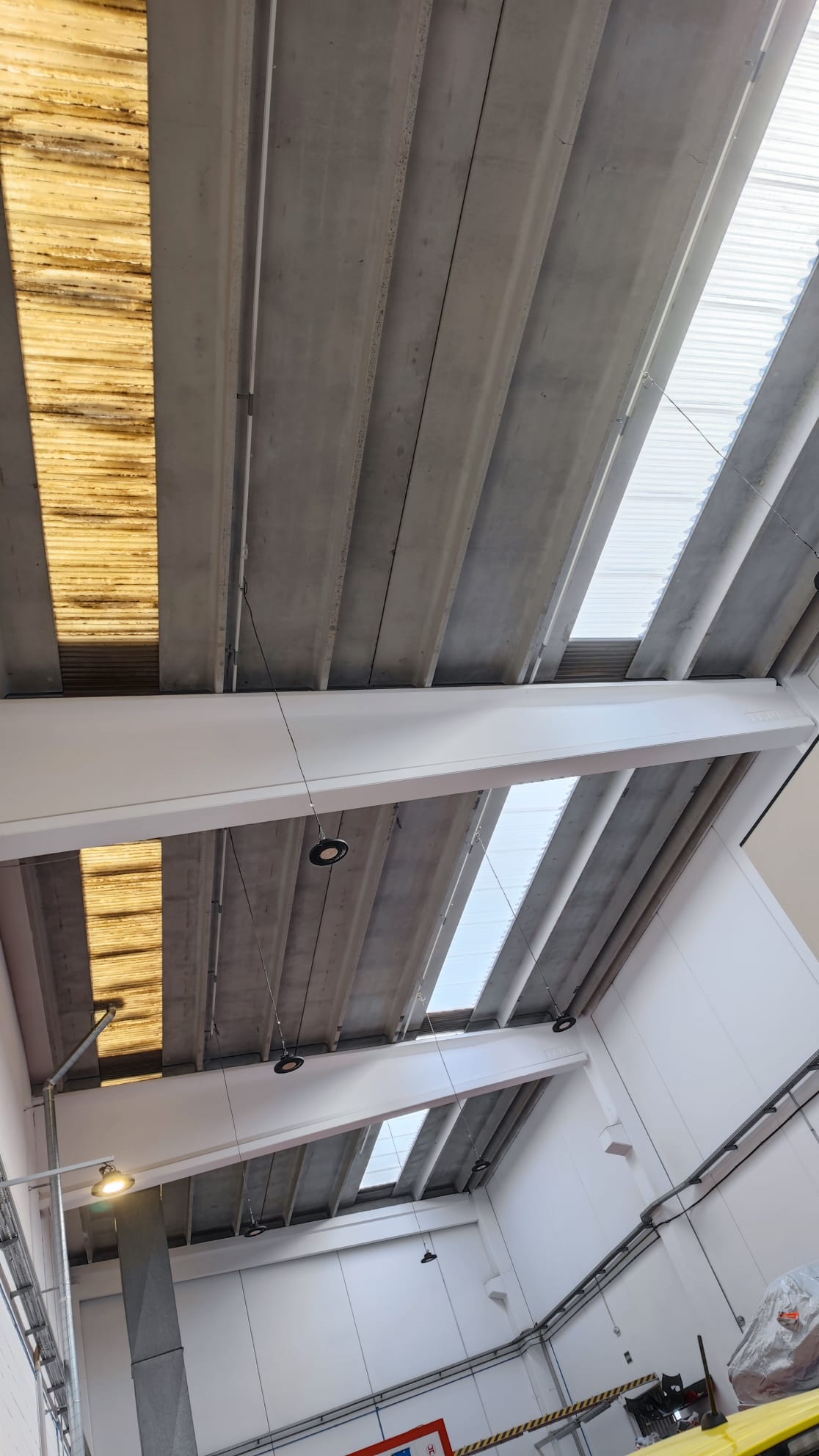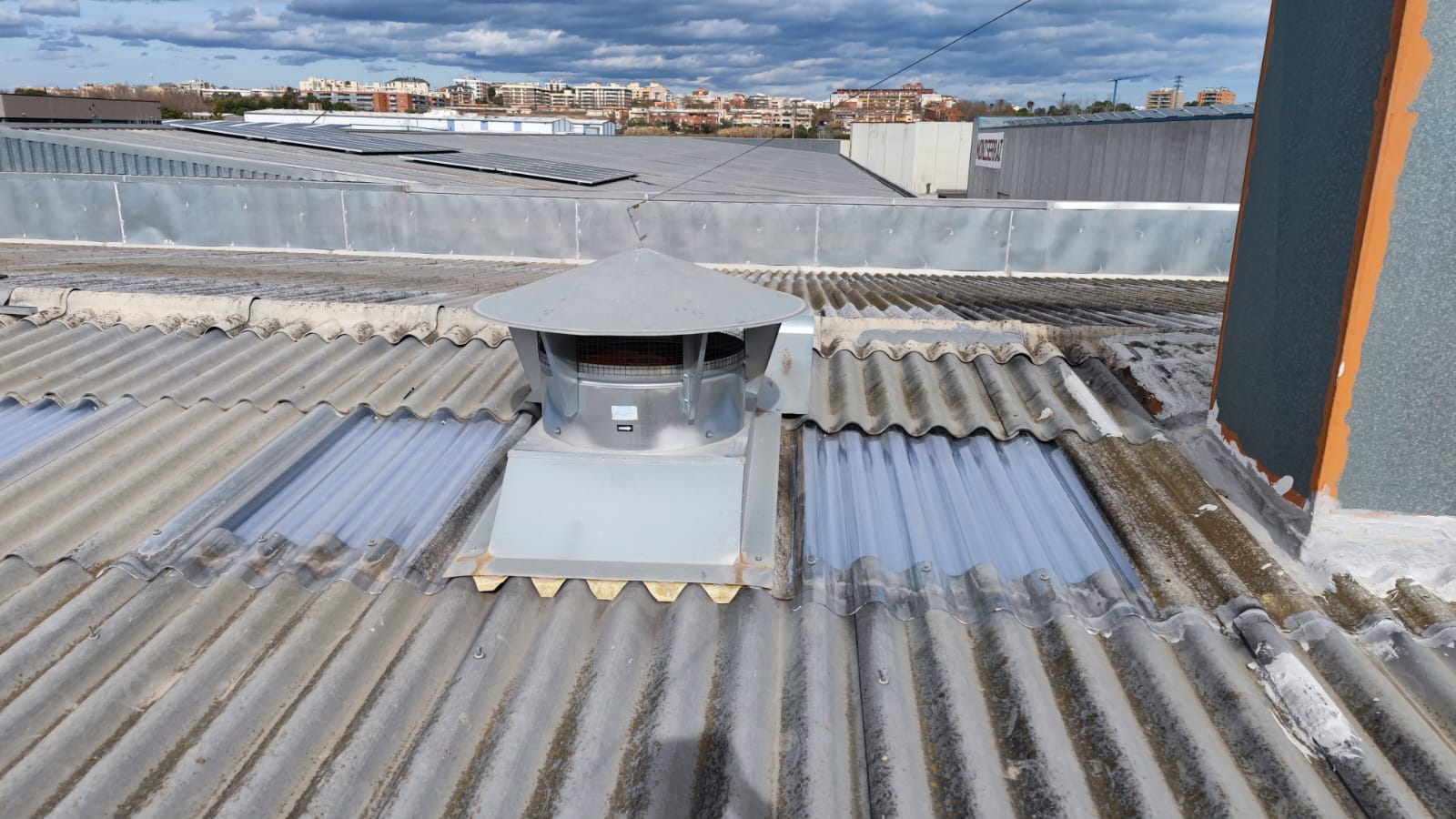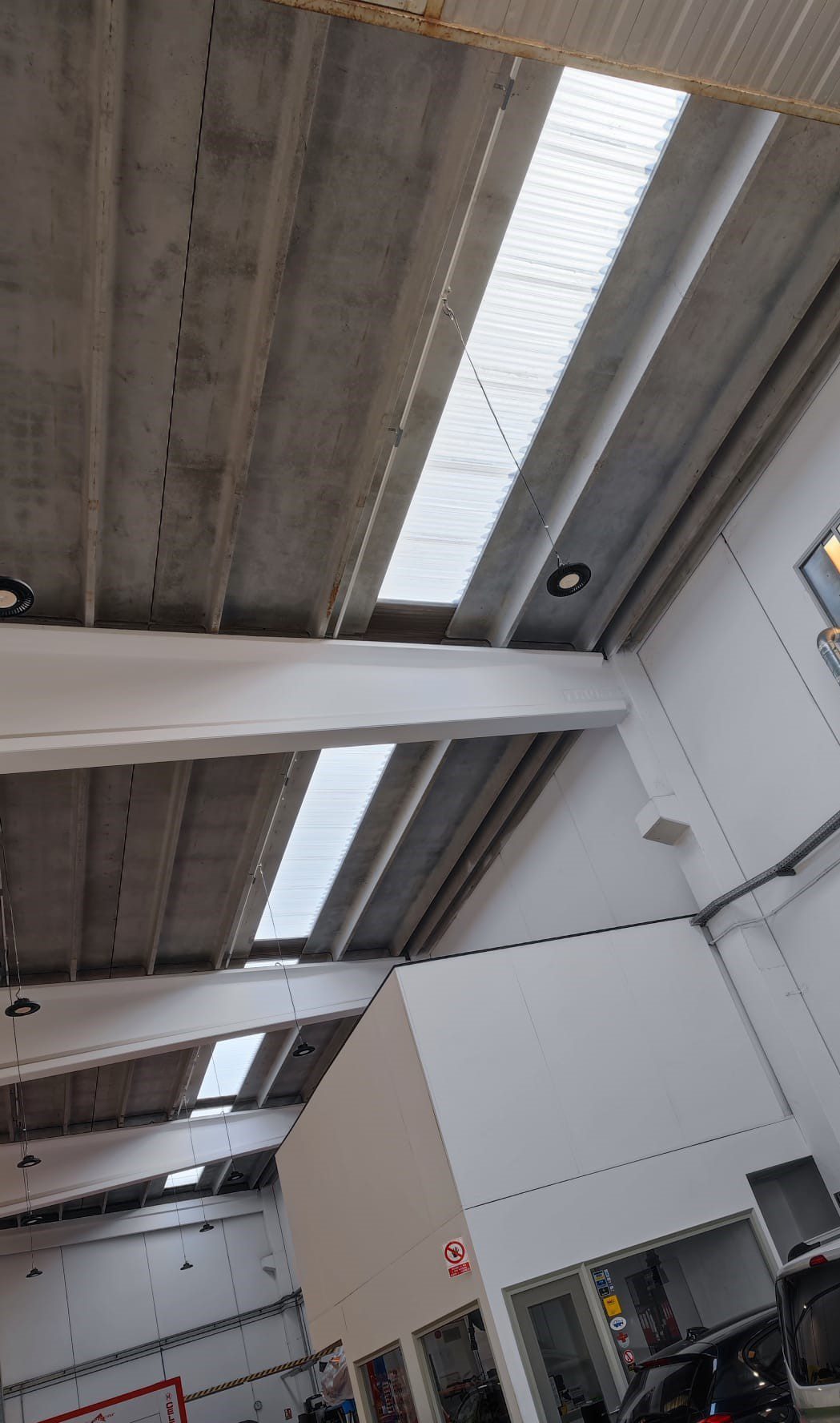Retirada por medios manuales de lucernarios de poliéster en cubierta, 2 capas superior modelo gran onda e inferior modelo mini honda. Nueva colocación en los huecos existentes de policarbonato compacto mismos perfiles de los desmontados, pero de 1mm de espesor, sellado con silicona neutra entre las nuevas placas y limpieza de la zona anexa de trabajo.